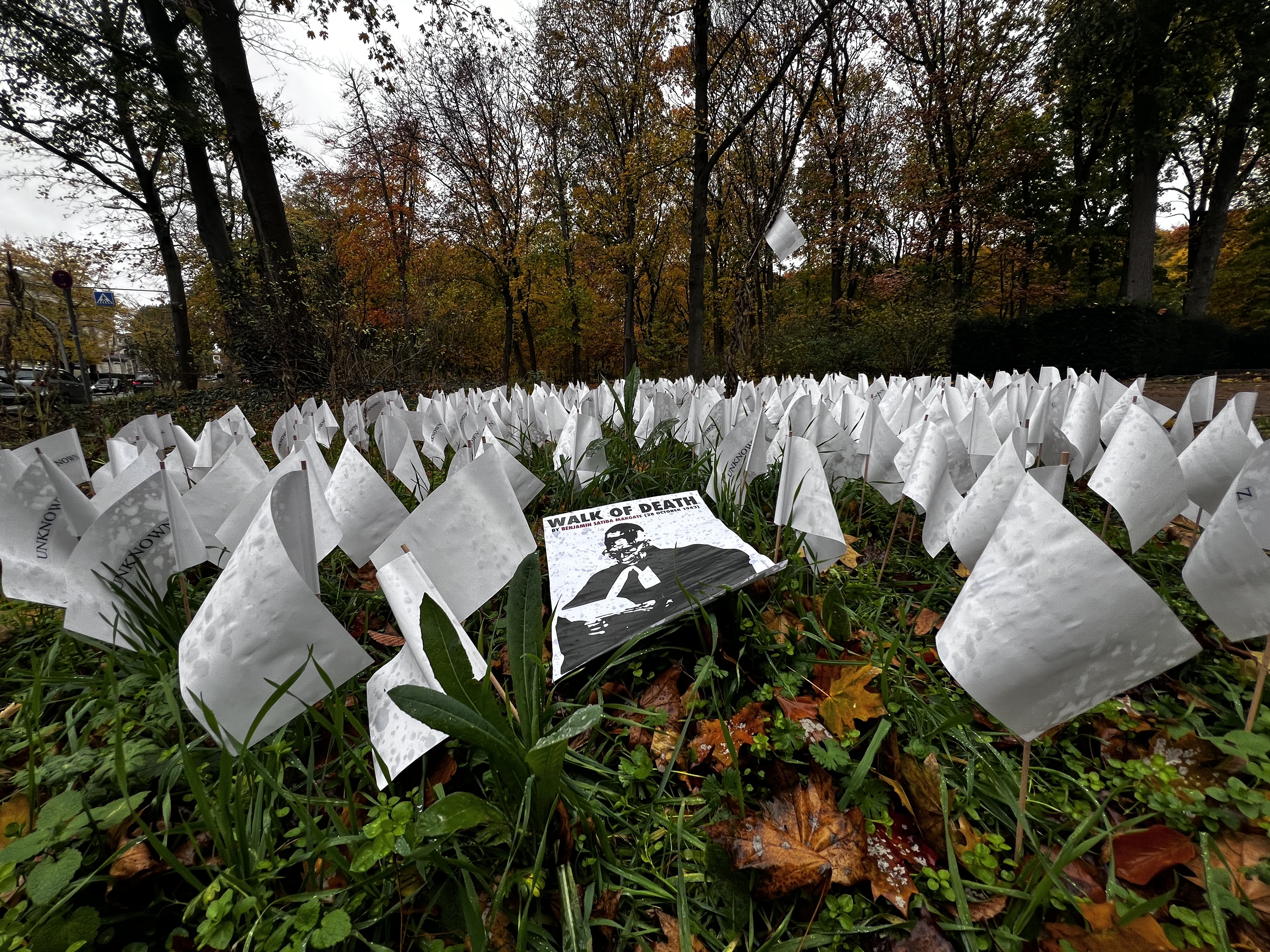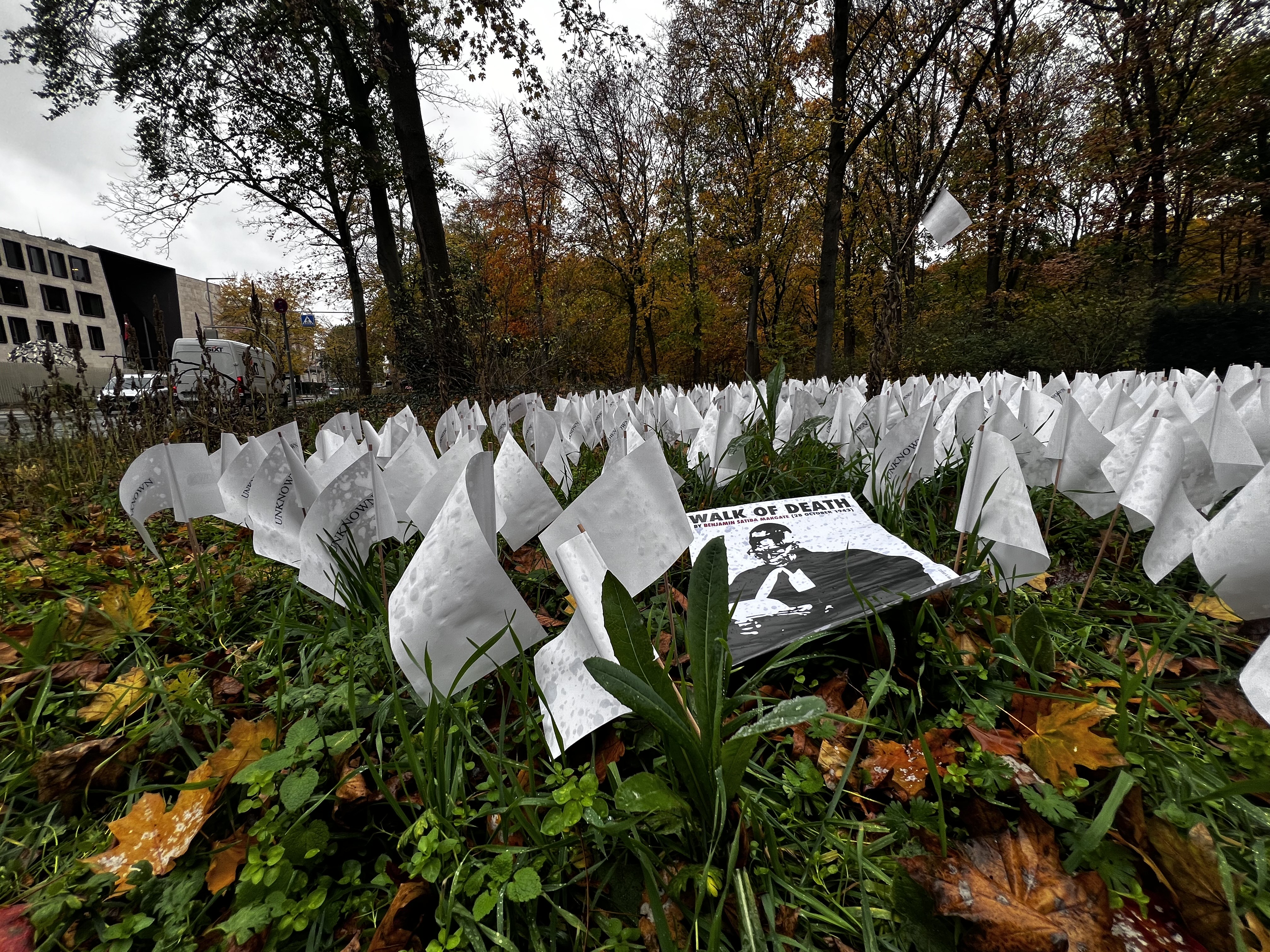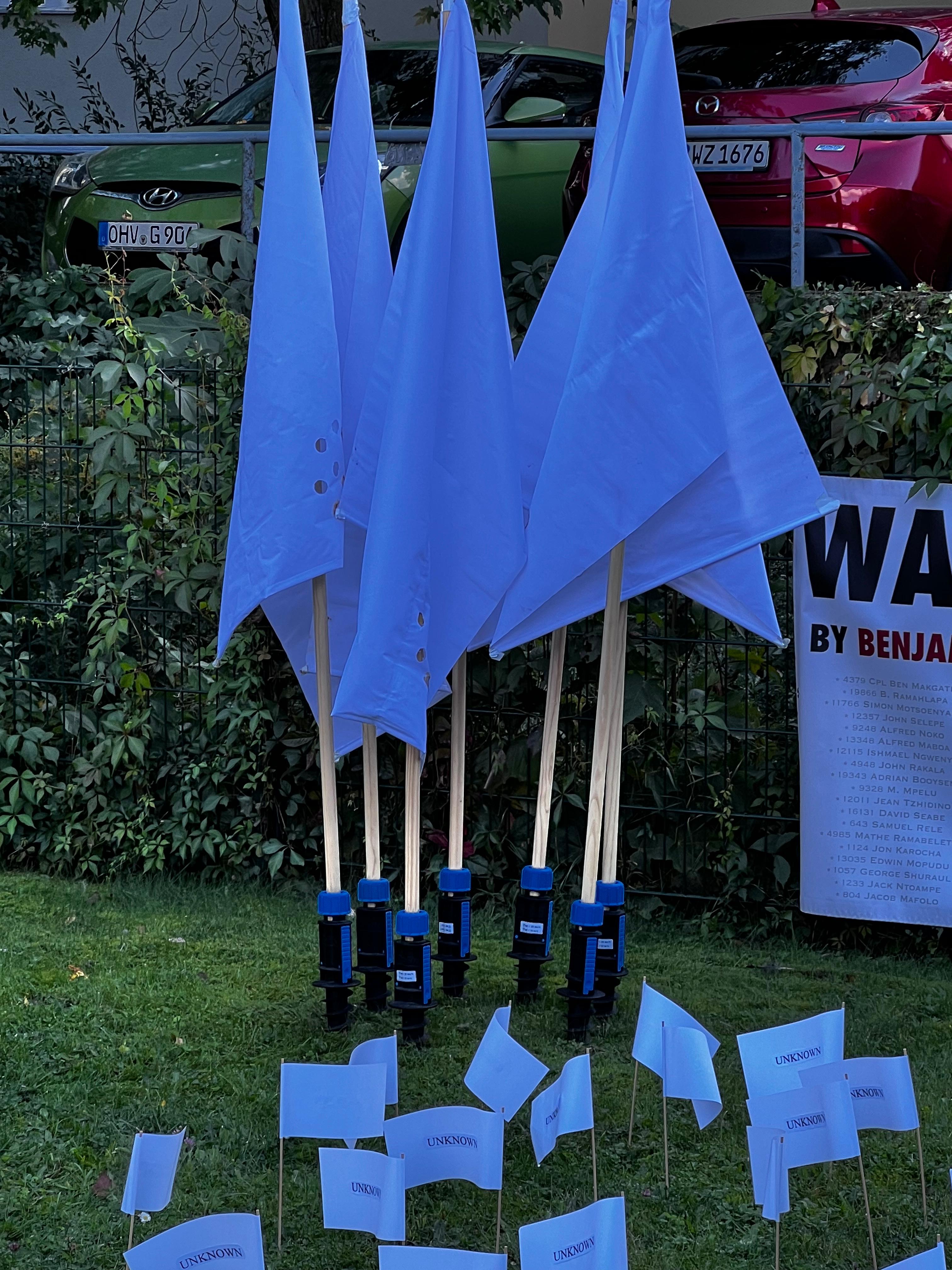 The 3rd year was the "Monumental Lengthy Memorials" on October 2022(24th−28th). .We displayed white flags at different location (South African,British, French & Italian Embassies, and the German Parliament Berlin) as a symbol of repatriating our forefather's souls to Afraka.